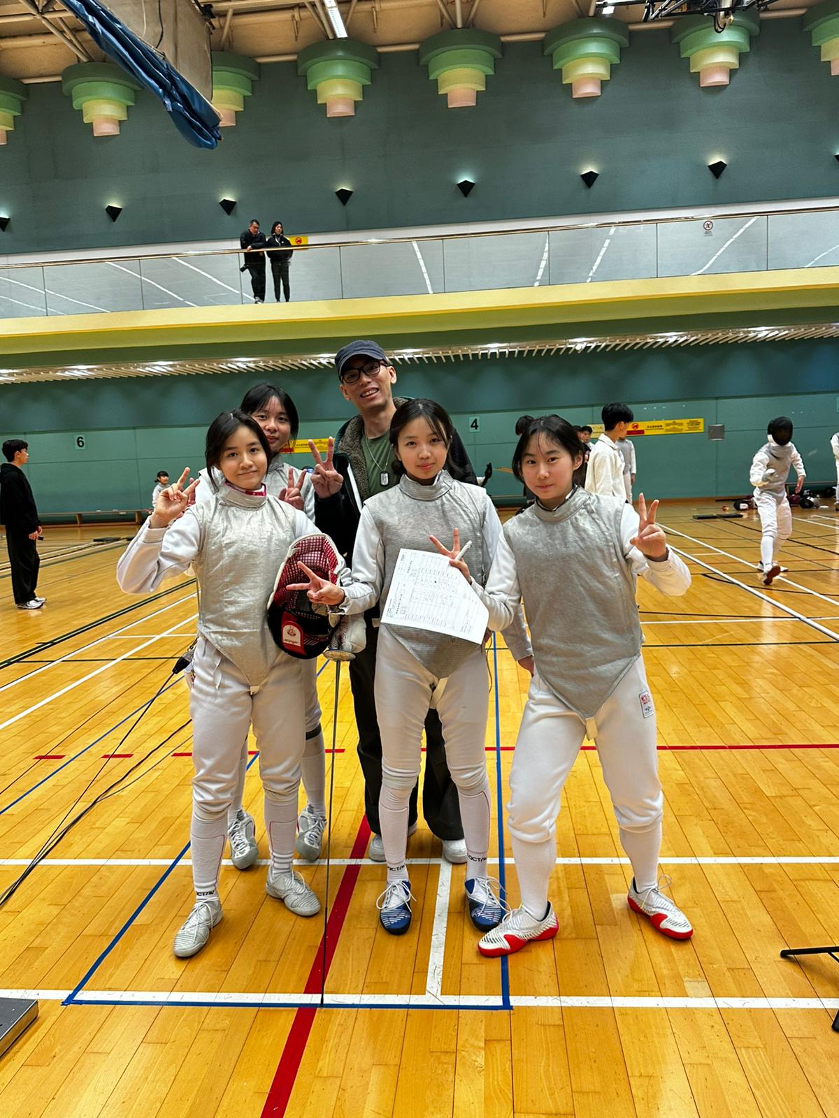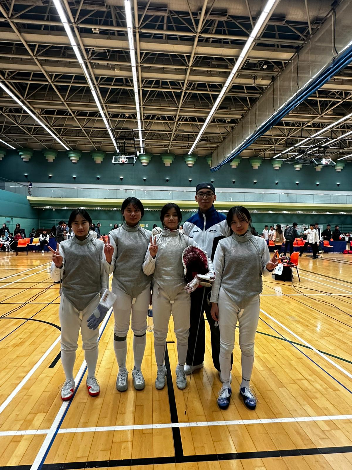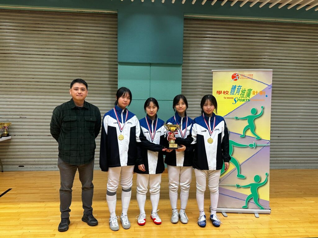 本校中六葉曦彤、中五劉詩穎、中四梁翯焉及中三蘇嘉寶同學於2026年1月4日參加外展劍擊比賽(花劍),經過一整天激烈的賽事,最終勇奪冠軍。恭喜各位同學為校爭光,展現出堅毅不屈和團隊合作的精神。