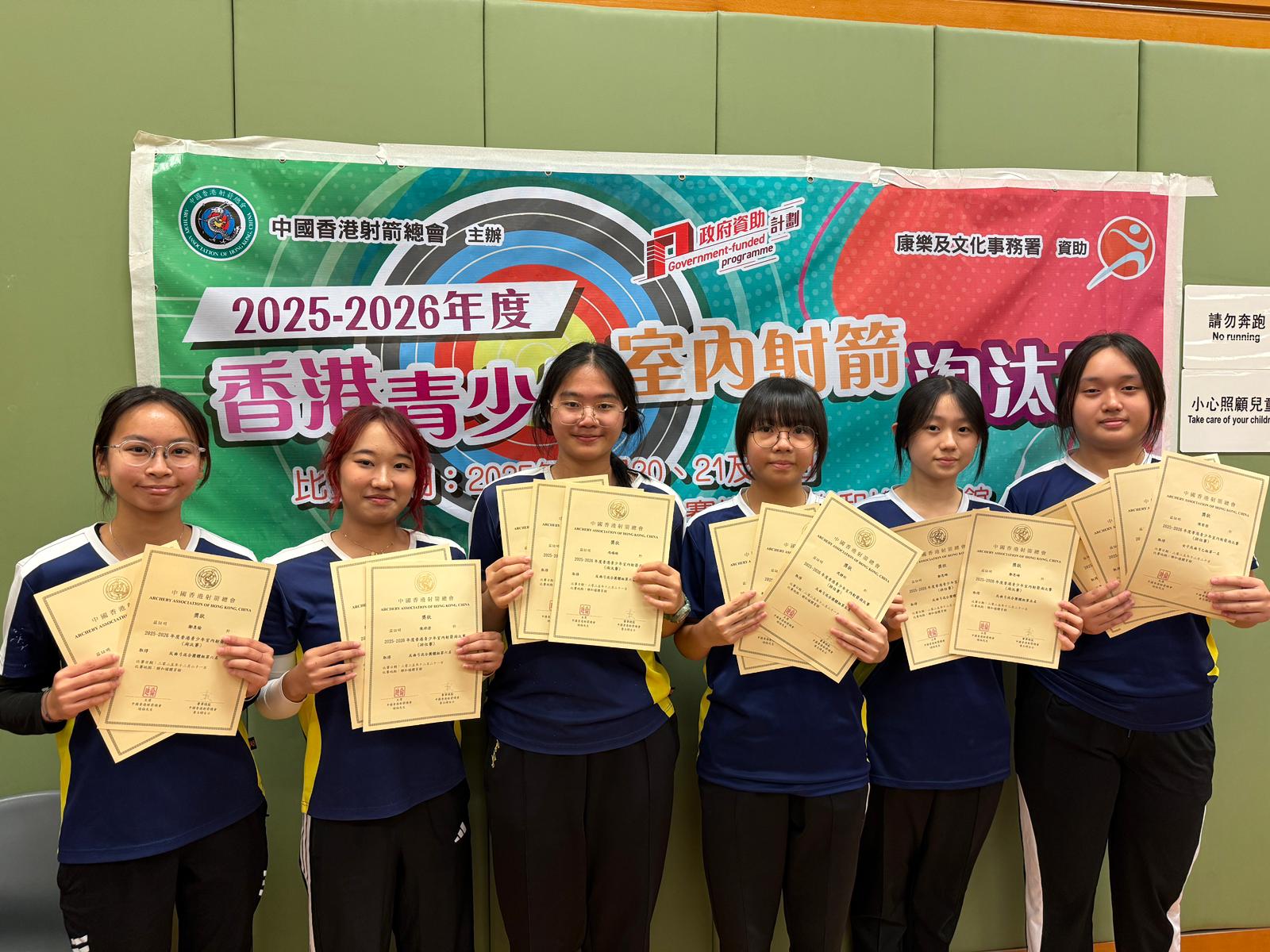 本校射箭隊於2025年12月25日舉行的「2025-26 年度香港青少年室內射箭淘汰賽」表現出色,獲獎如下: