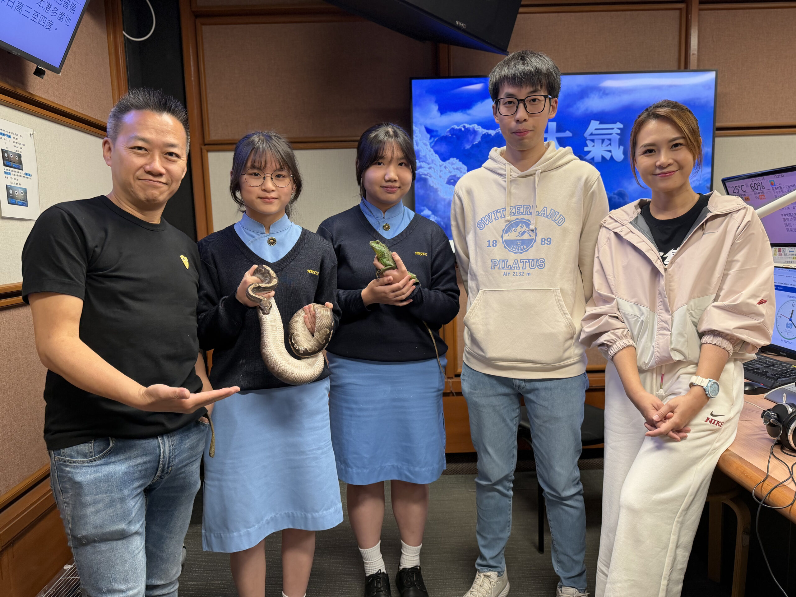 本校動物護理及生物科研學會主席中五陳凱嵐同學及副主席中五楊珮孜同學,連同學會負責老師朱湋麟老師,於2026年2月14日出席香港電台第一台的氣候及環境資訊節目《大氣候》的訪談。此次訪談的目的是讓同學向公眾介紹本校生物科的最新發展,包括如何將動物護理融入價值教育及其他校本課程之中。