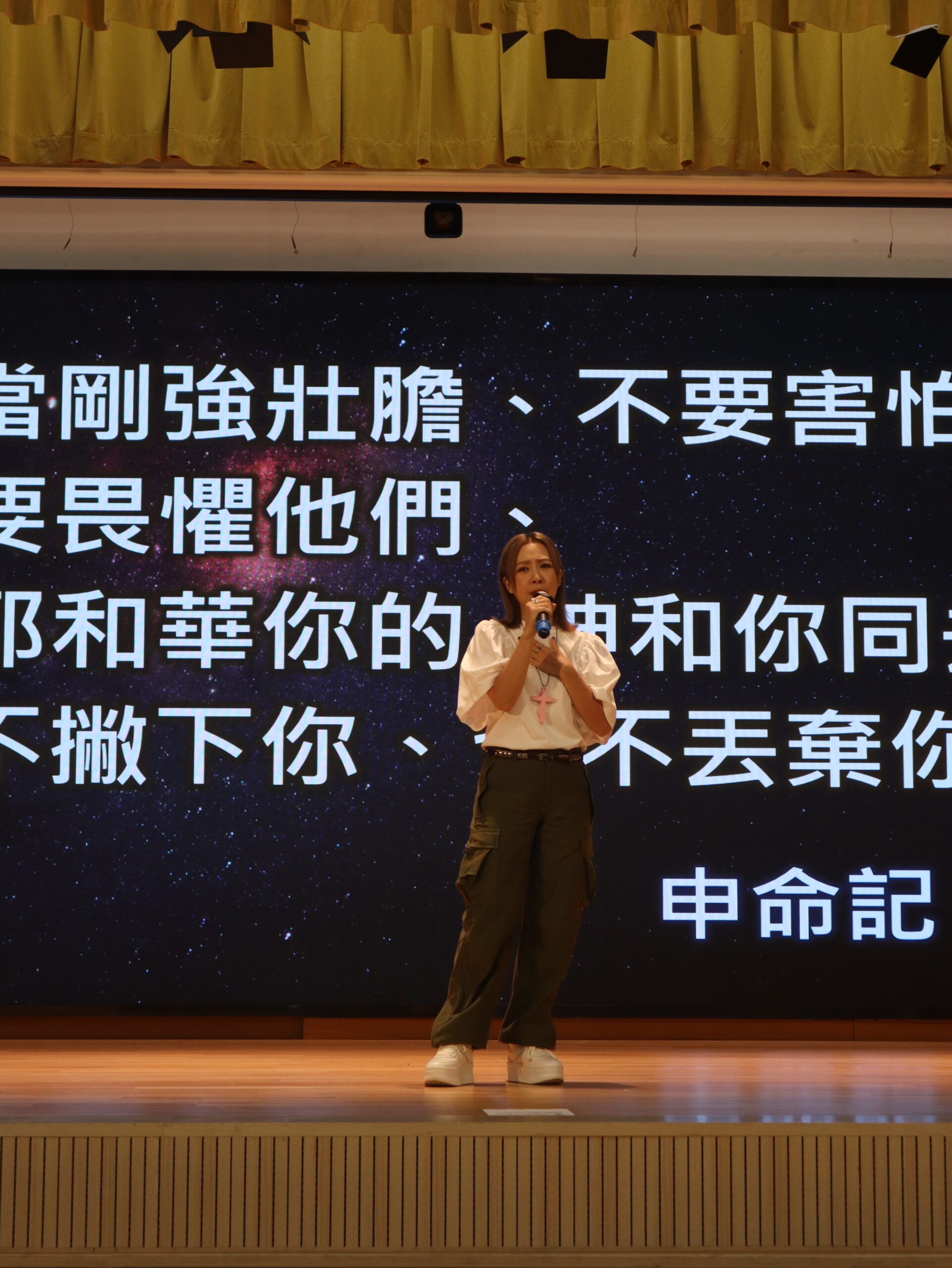 為配合我校「活得健康」的目標,提升學生的心靈質素。本校邀請「永恆音樂事工」及「妍亮生命慈善基金」蒞臨本校,於2025年9月5日生活教育課跟學生見面,以音樂開啟學生的心扉,透過生命故事的分享,鼓勵學生從上帝得到力量去面對生命和找到自己的方向。
